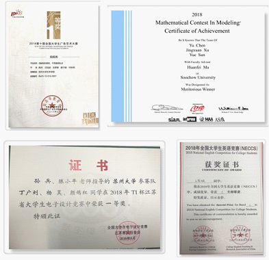 回望2018我校本科生共參與省級及以上學(xué)科競賽56項(xiàng),獲省級及以上獎(jiǎng)項(xiàng)847項(xiàng),獲獎(jiǎng)學(xué)生達(dá)1402人次,獲獎(jiǎng)面覆蓋全校所有學(xué)院(部)。在相關(guān)重點(diǎn)賽事中,我校榮獲第十屆全國大學(xué)生廣告藝術(shù)大賽一等獎(jiǎng)1項(xiàng)、全國大學(xué)生英語競賽特等獎(jiǎng)7項(xiàng)、江蘇省電子設(shè)計(jì)大賽一等獎(jiǎng)10項(xiàng)及美國大學(xué)生數(shù)學(xué)建模競賽一等獎(jiǎng)5項(xiàng)等。