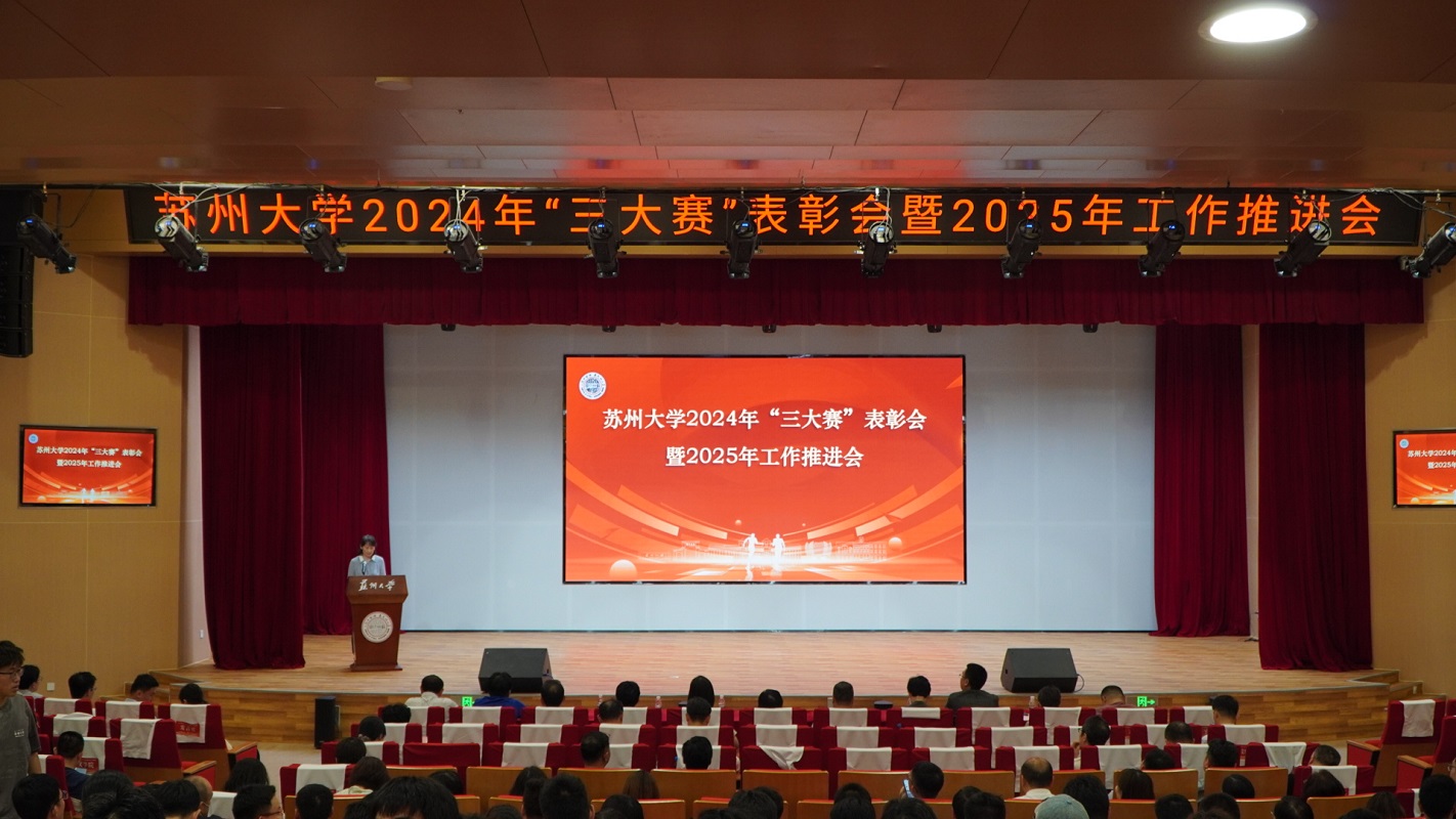 為總結學科競賽經驗、表彰先進典型,進一步深化我校競賽育人工作,516日下午,蘇州大學2024年“三大賽”表彰會暨2025年工作推進會在獨墅湖校區文體中心舉行。校黨委常委、副校長姚建林,相關職能部門及直屬單位負責人,各學院(部)競賽工作領導小組成員,創新創業教育實踐基地代表,獲獎團隊代表及指導老師,各學院學生代表齊聚現場,共商雙創教育發展新路徑。