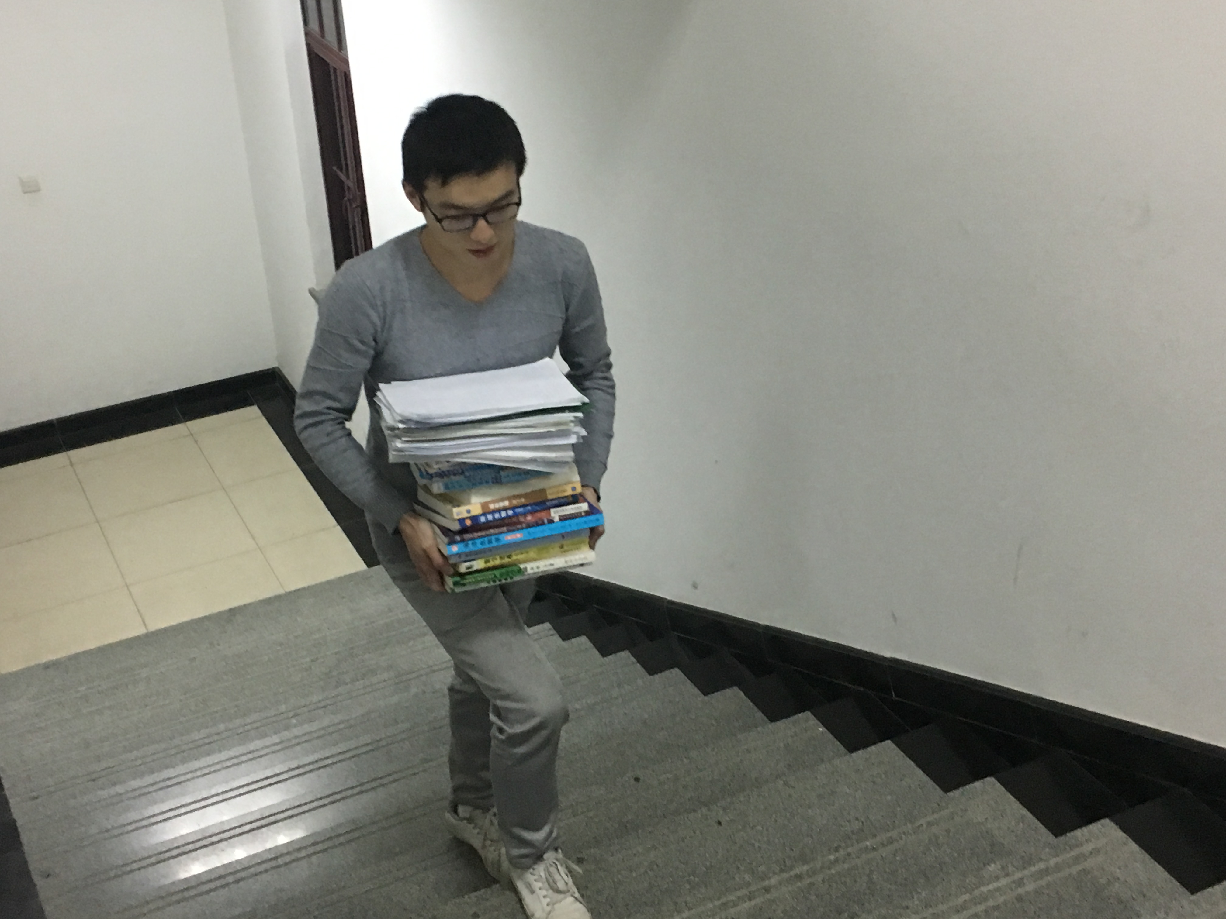剛開始團(tuán)隊(duì)三名成員中只有張書安一個(gè)男生,他包攬了所有的收書搬書的體力活,樓上樓下跑,挨個(gè)宿舍募集書籍。有一次因?yàn)檫^度勞累,導(dǎo)致左臂脫臼,手臂剛復(fù)位的第二天,又急忙跑去畢業(yè)生宿舍收集書籍了。