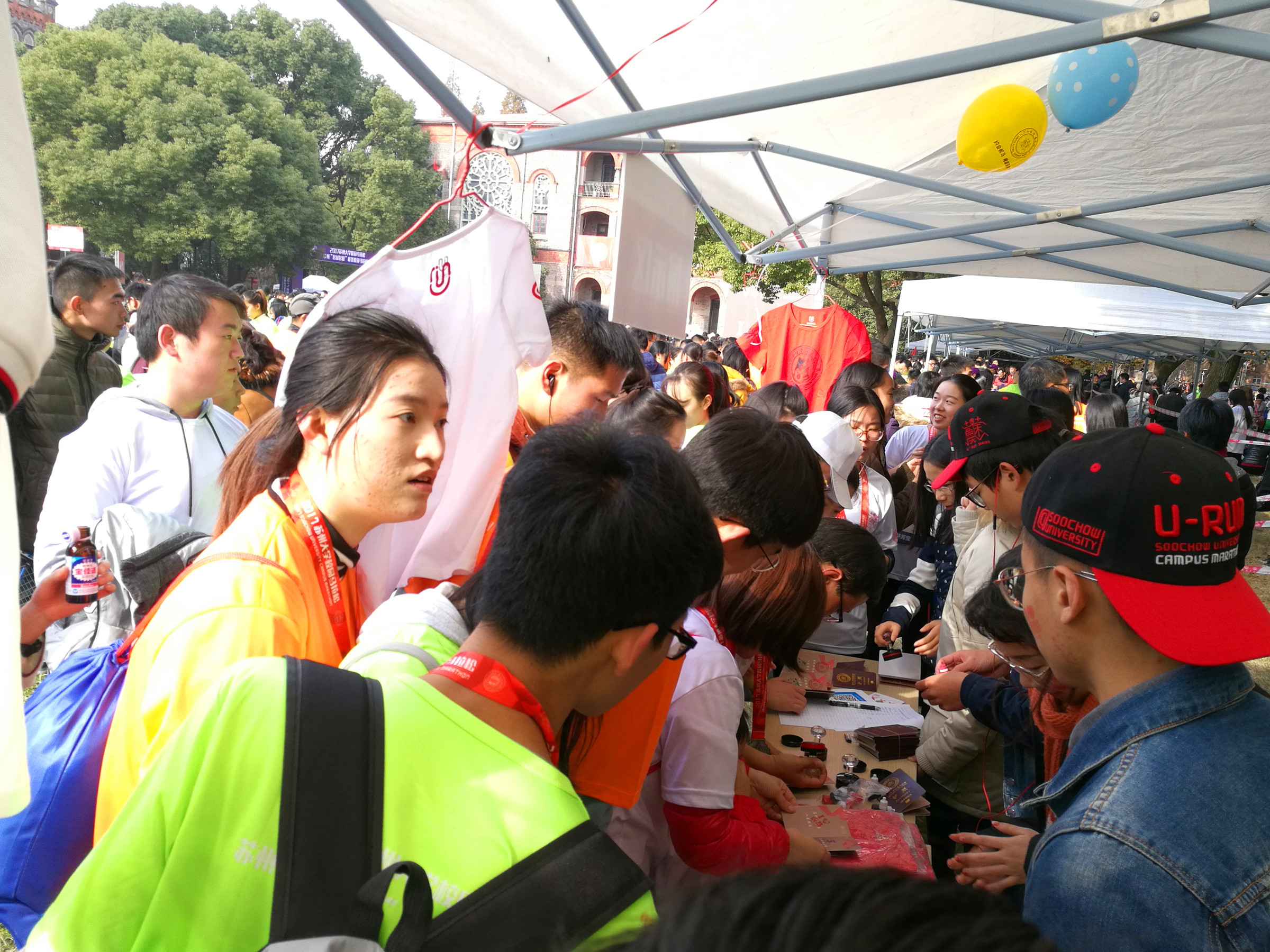 活動(dòng)現(xiàn)場(chǎng),有一個(gè)攤位格外引人注目,明信片、運(yùn)動(dòng)衫、帽子、護(hù)照等蘇大紀(jì)念品掛滿了整個(gè)帳篷,吸引了許多選手和觀眾前來購(gòu)買。這是今年蘇大惠寒基金會(huì)和校馬聯(lián)合舉辦的一路惠寒,為愛奔跑愛心義賣活動(dòng)。