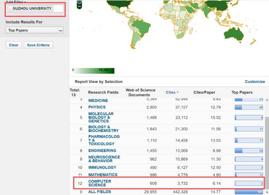 統(tǒng)計(jì)數(shù)據(jù)顯示,在本次ESI數(shù)據(jù)統(tǒng)計(jì)區(qū)間內(nèi),蘇大在計(jì)算機(jī)科學(xué)學(xué)科領(lǐng)域共發(fā)表SCI論文608篇,總被引用3732次,篇均被引用6.14次。這些數(shù)據(jù)反映了計(jì)算機(jī)科學(xué)學(xué)科已邁入世界前列,在科研能力、創(chuàng)新能力、學(xué)科建設(shè)能力等方面具有較高的學(xué)術(shù)影響力及同行認(rèn)可度。