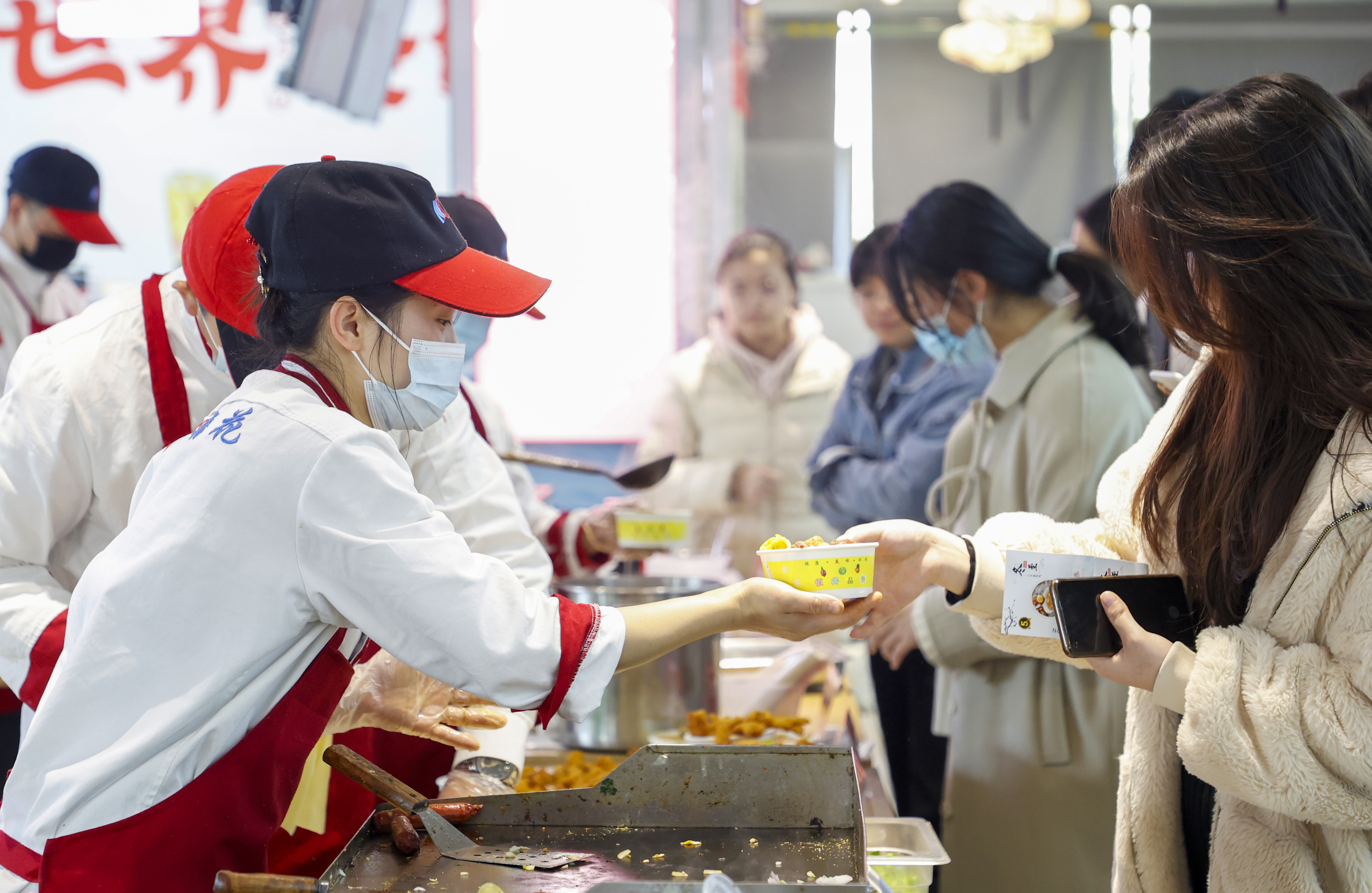 冬至夜當天,學校各校區學生食堂洋溢著歡樂的節日氛圍。活動現場,師生們排起長隊興致勃勃地品嘗著各類美食,酒釀元宵、水餃、各色蘇式鹵味、特色糕點、休閑小食琳瑯滿目,令人垂涎欲滴。為了讓同學們在寒冬過一個溫馨暖心的冬至節,延續往年慣例,今年學校仍為每位學生發放了10元加餐券。加餐券上印有著名書法家、我校華人德老師書寫的亞歲迎祥,履長納慶字樣,既寓意冬至迎納吉祥,寄托對美好生活的祈愿,亦有收藏價值。