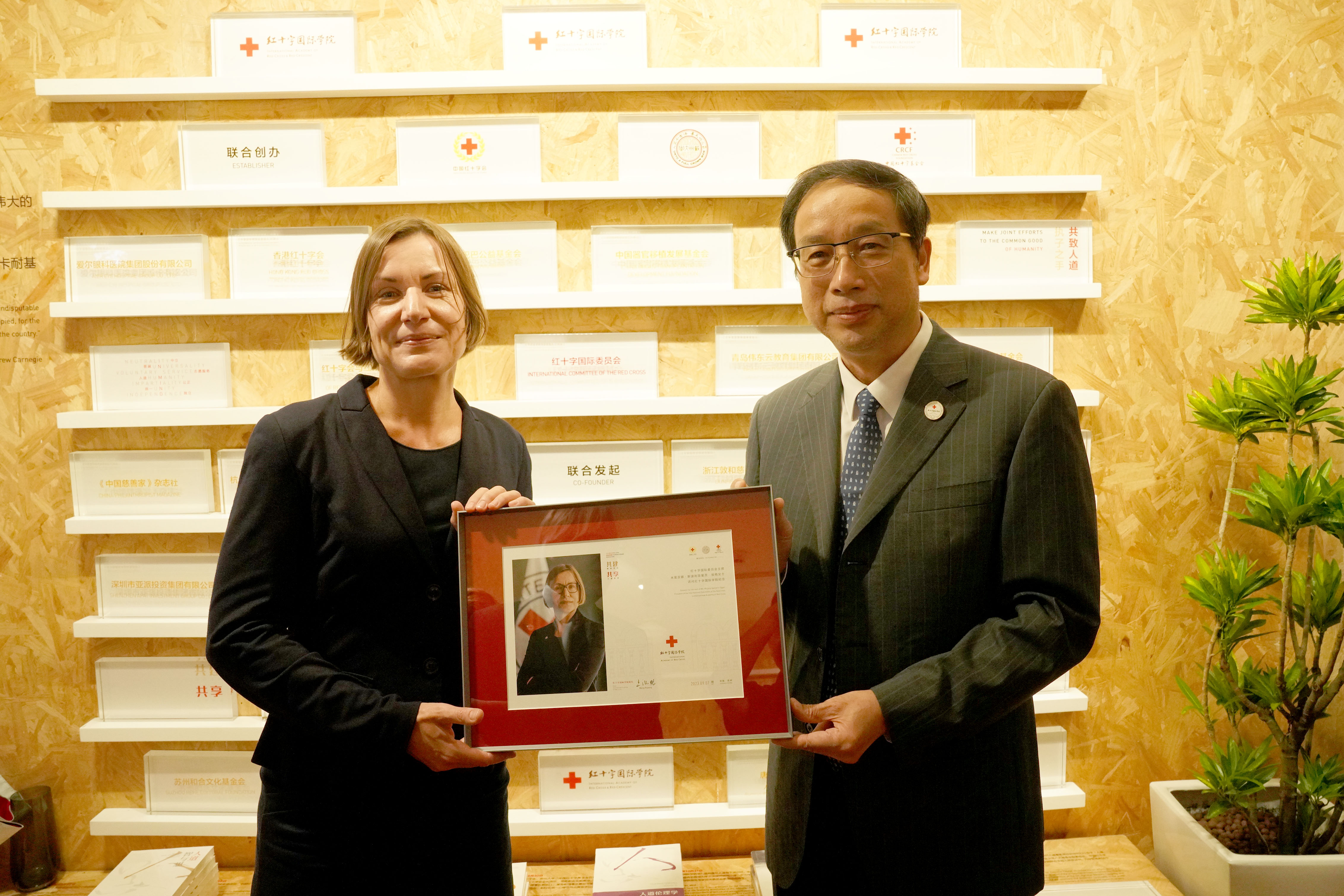 會見中,雙方就進一步深化人道文化交流,擴大教學科研資源合作,共同推進人道教育和紅十字國際學院的發展交換了意見并互贈紀念禮物。