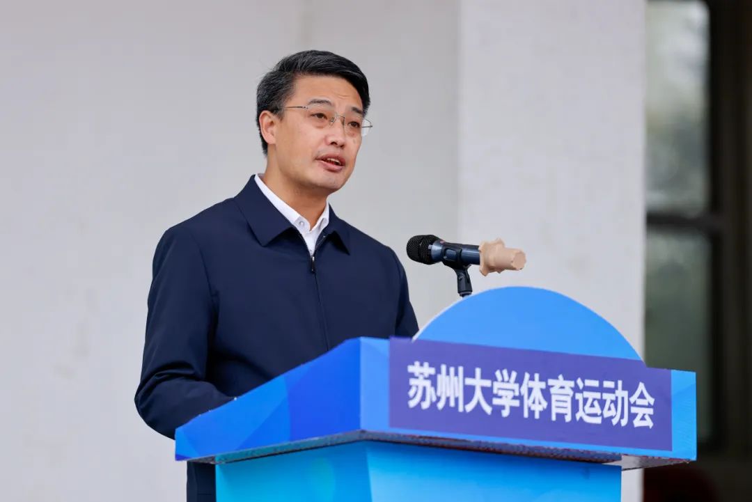 鄧敏代表學(xué)校及運(yùn)動(dòng)會(huì)組委會(huì)向取得優(yōu)異成績(jī)的代表隊(duì)及運(yùn)動(dòng)員表示祝賀,向籌備和保障運(yùn)動(dòng)會(huì)成功舉辦而辛勤付出的師生員工表示感謝。他指出,舉辦運(yùn)會(huì)是學(xué)校貫徹黨的教育方針、落實(shí)“五育并舉”豐富校園文化生活、提高師生身體素質(zhì)弘揚(yáng)新時(shí)代蘇大精神、砥礪爭(zhēng)創(chuàng)一流品格的重要舉措。希望全體蘇大人能將在賽場(chǎng)上展現(xiàn)出來(lái)的積極向上的狀態(tài)帶到學(xué)習(xí)工作中去,努力為學(xué)校的“雙一流”建設(shè)、為建設(shè)社會(huì)主義現(xiàn)代化強(qiáng)國(guó)、為實(shí)現(xiàn)中華民族偉大復(fù)興的中國(guó)夢(mèng)作出積極貢獻(xiàn)