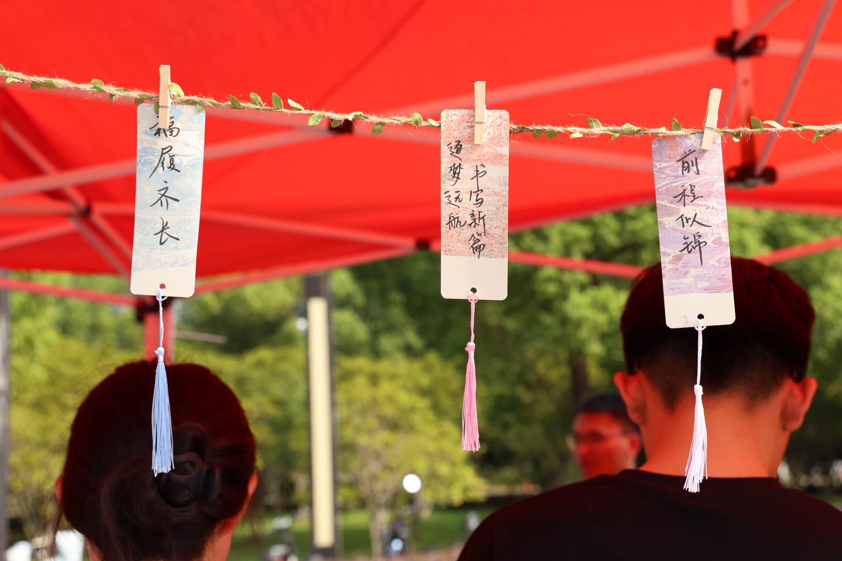 紡織與服裝工程學院(紫卿書院)舉辦“漂漆書簽”體驗活動,萌新們親手制作各色樣式的書簽,并寫下美好期許。現場設置了2024屆本科畢業生高質量升學展板,吸引眾多新生和家長打卡。