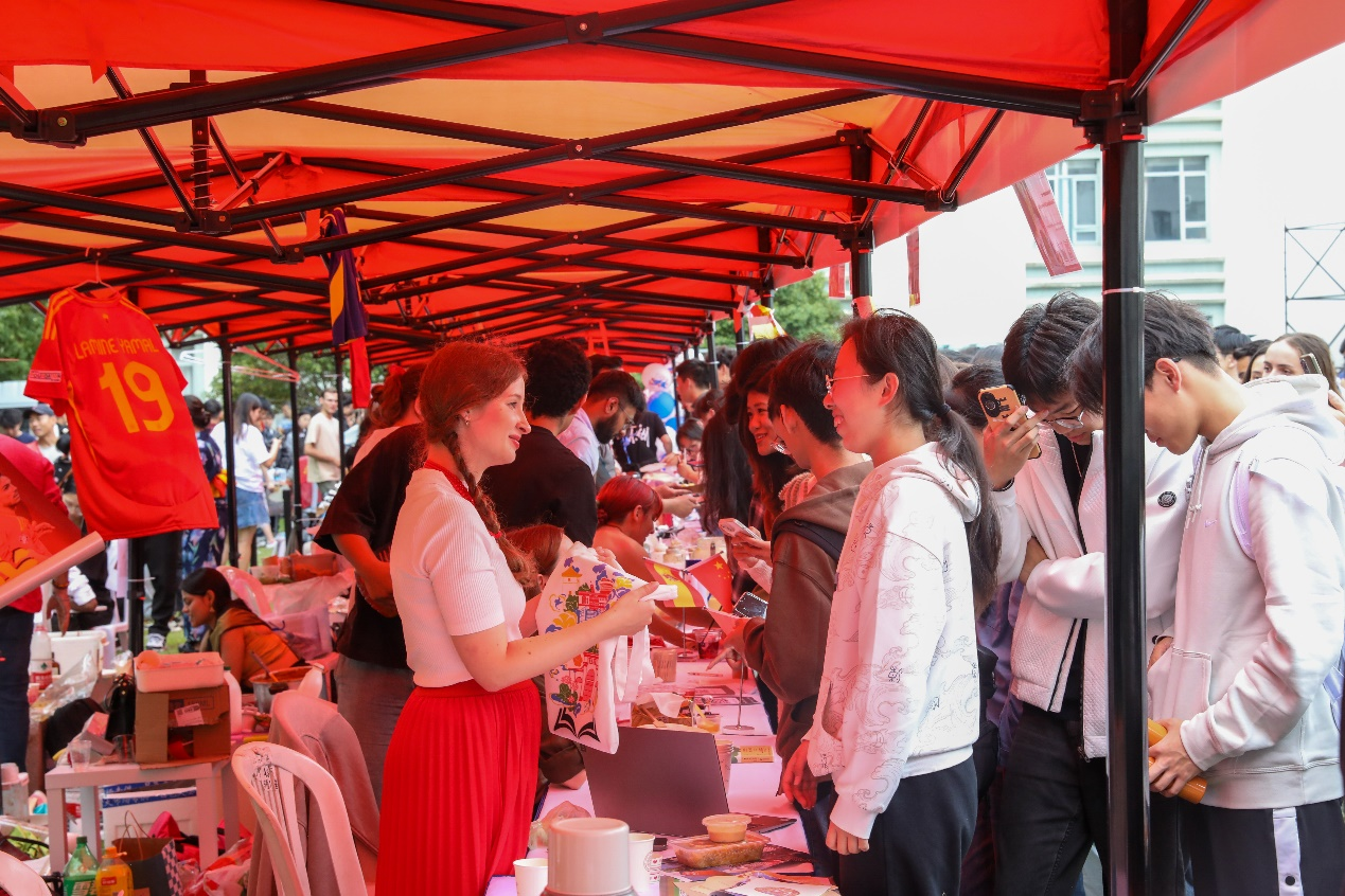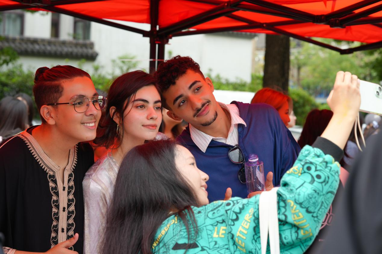 來自蘇州醫學院的馬來西亞留學生陳佳齊身著傳統娘惹服飾,開心地說道:“今天我認識了許多不同國家的朋友,和他們交流溝通中,我感受到了多元文化的交融與美好。”來自傳媒學院的2024級越南留學生黃氏翠銀第一次參加國際周的活動,難掩激動的心情:“各國美食都有獨特風味,非常感謝學校舉辦國際周的活動,讓我們能集中體驗到如此多元的國際文化。”