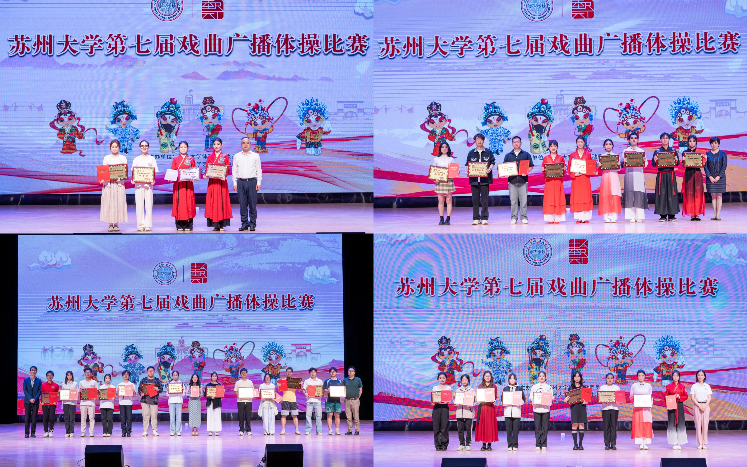 為深入學(xué)習(xí)貫徹習(xí)近平總書記關(guān)于傳承和弘揚(yáng)中華優(yōu)秀傳統(tǒng)文化的系列重要論述,落實(shí)學(xué)校美育浸潤行動(dòng),持續(xù)推進(jìn)“戲曲進(jìn)校園”與“體美融合”育人實(shí)踐,5月18日,由校體育運(yùn)動(dòng)委員會、藝術(shù)教育中心主辦,學(xué)生藝術(shù)聯(lián)合會承辦的蘇州大學(xué)第七屆戲曲廣播體操比賽在存菊堂舉行。校黨委常委、副校長查佐明出席活動(dòng),相關(guān)職能部門負(fù)責(zé)人參加活動(dòng),來自28個(gè)學(xué)院(部)的近700名同學(xué)參賽。