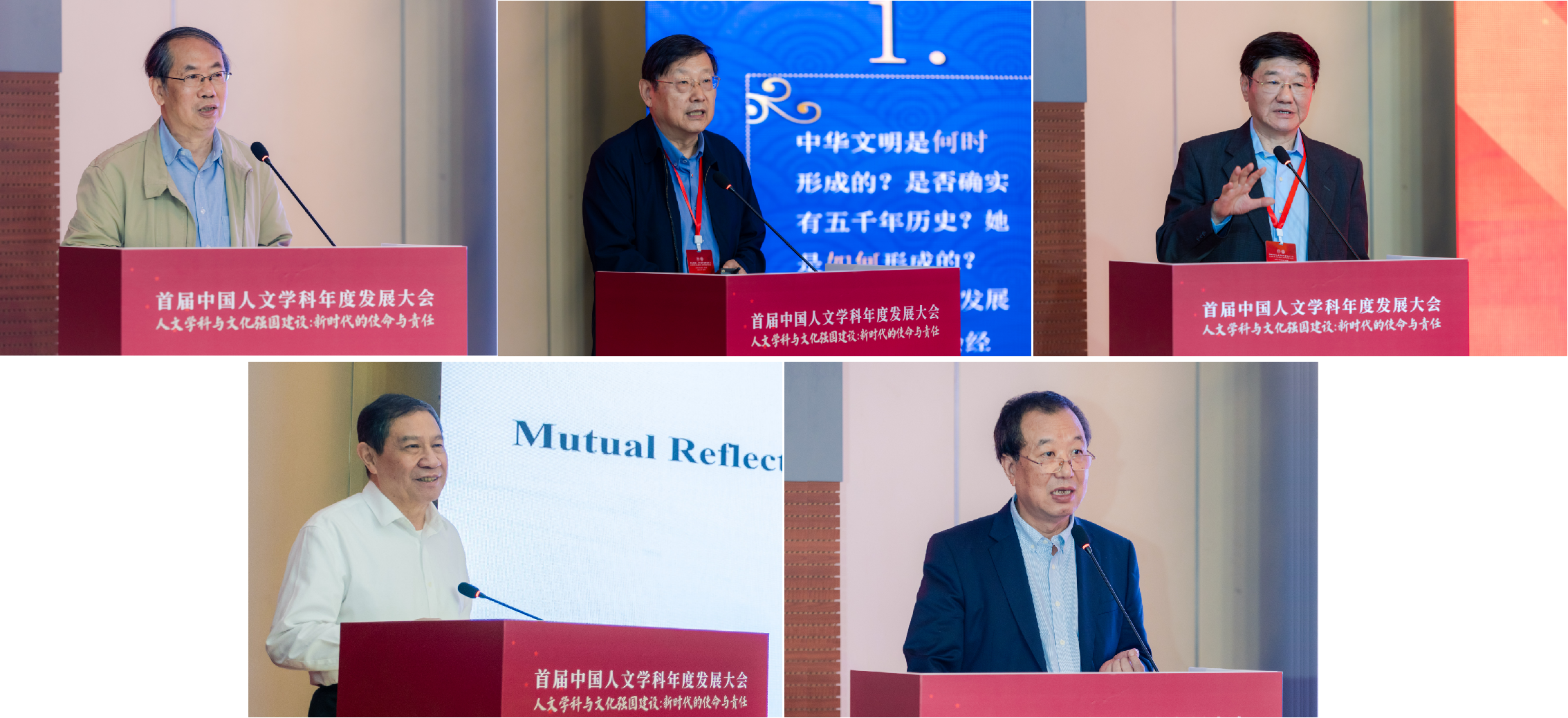 國家一級教授、北京大學博雅講席教授陳平原,中國社會科學院學部委員、歷史學部主任王巍,國家一級教授、復旦大學當代國外馬克思主義研究中心主任吳曉明,中國人民大學原副校長、文學院教授楊慧林,蘇州大學講席教授、學術委員會主任王堯分別以“人工智能時代的人文學”“何為文明?——關于判斷進入文明社會的標準”“中國學術的自我主張”“文明互鑒與對話式研究”“重建人文學科闡釋世界的能力”為題作主旨報告,共同探討人工智能時代下人文學科的堅守與發展,系統展現當前人文學界在學術研究與文化傳承創新之間的同向共振,進一步深化人文研究、弘揚中華文明。